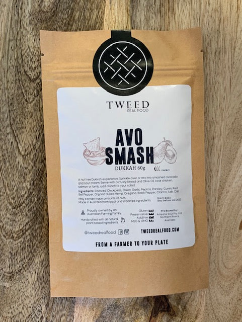 Avo Smash Dukkah gives a nut free Dukkah experience with double roasted chickpeas, pepitas and Australian Organic hemp seeds with undertones of cumin, chilli and pepper.