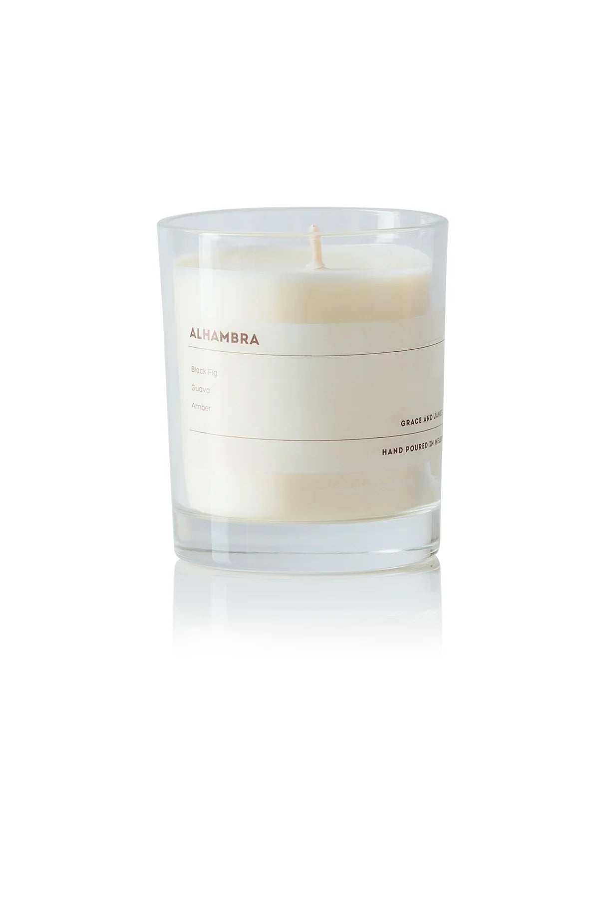 Indulge in the uncomplicated elegance of Bare Alhambra's BLACK FIG, GUAVA, and AMBER scented candle, made with 100% soy wax and a single wick for a 40-hour burn. For a longer-lasting luxury experience.