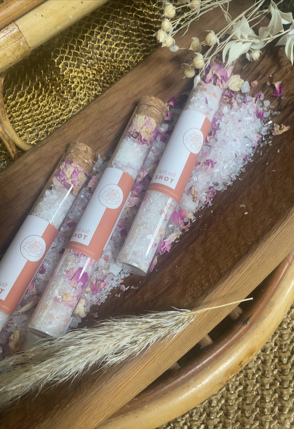 Transform your bath into a luxurious escape with our Botanicals Bath Shot. This exquisite blend combines calming salts, enriching botanicals, and fragrant essential oils to offer a pampering self-care experience. Each shot is infused with skin-nourishing elements that promote relaxation and help restore harmony to your body and mind. Beyond their captivating appearance and delightful scent, these bath shots deliver powerful therapeutic benefits. Key ingredients include Pink Himalayan Salt, Epsom Salts, and botanicals, enhanced with Rose Geranium and Lavender essential oils.