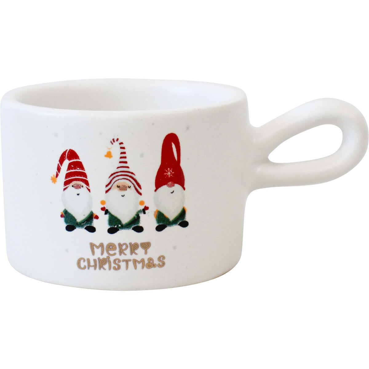Bring festive magic to your space with this delightful ceramic tealight holder, complete with whimsical gnomes and a cheerful 'Merry Christmas' message. Compact at 8x5x3cm, it's the perfect size for shelves, mantels, or tabletops. Let the warm glow of a tealight create cosy holiday ambiance wherever you place it.