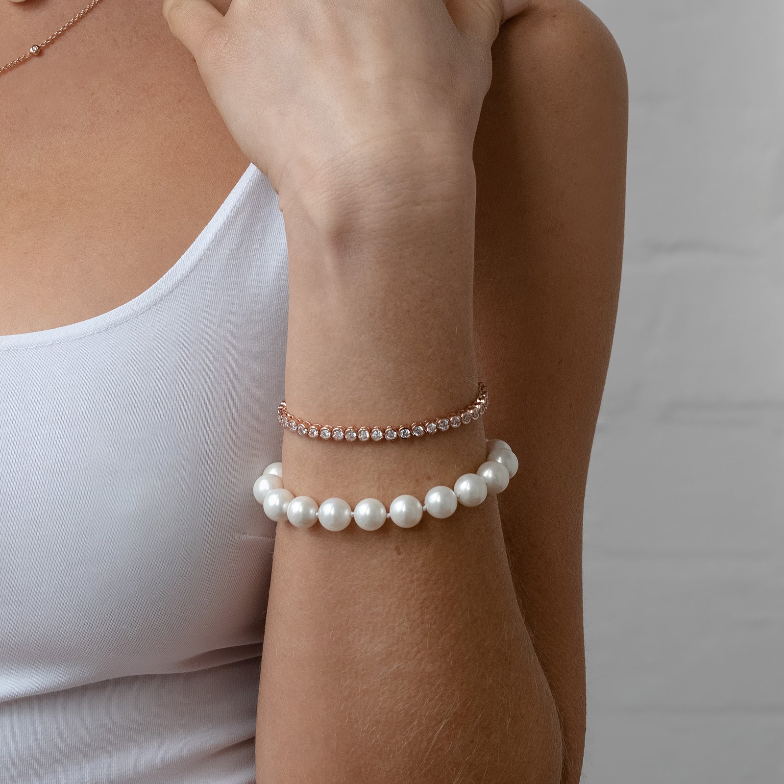 The quintessential pearl bracelet with a beautiful cubic zirconia clasp for an added touch of Sybella glamour.