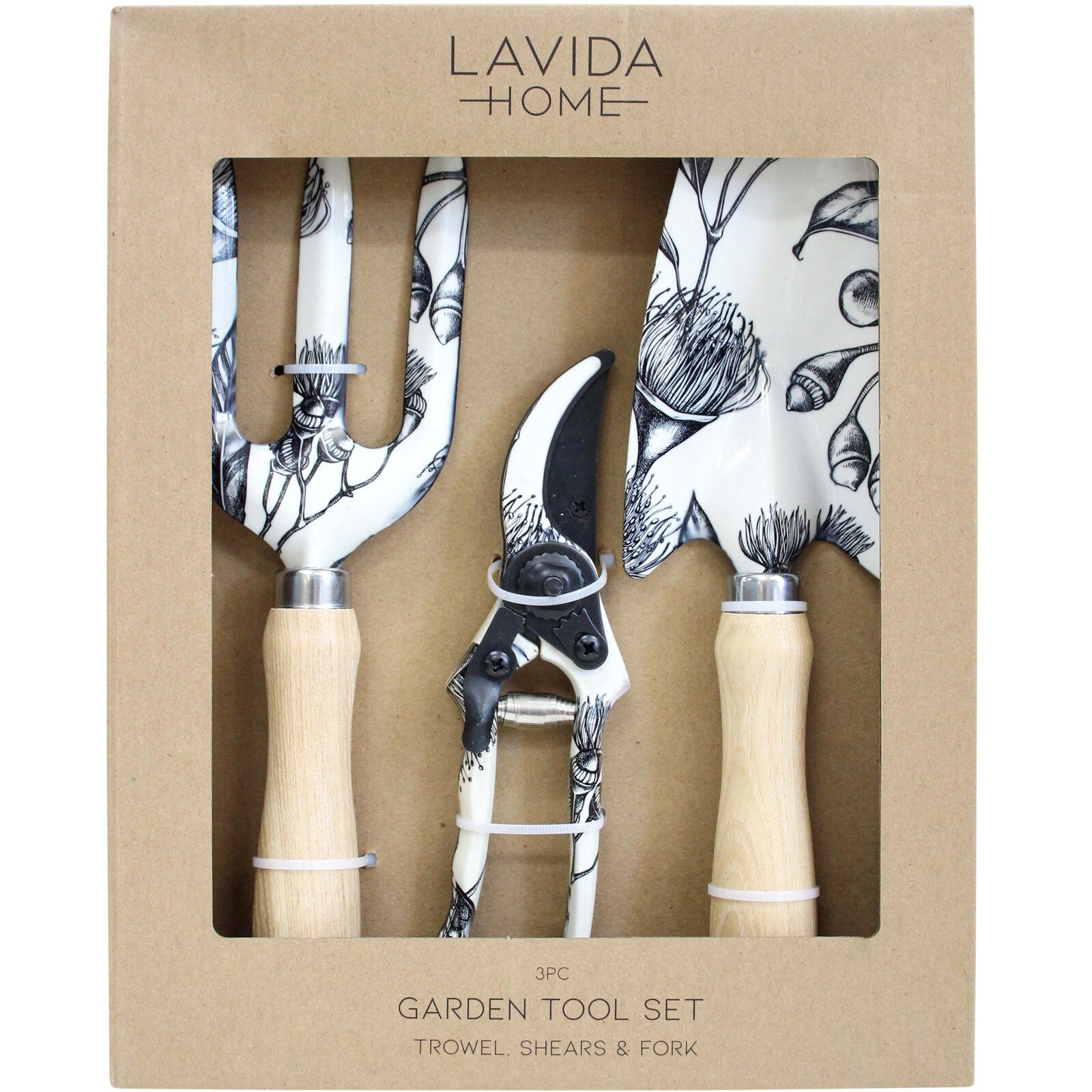 Elevate your gardening game with the vibrant Garden Tool Set/3 Spring. Crafted from durable aluminum, this set includes a spade, fork, and shears, each adorned with a pattern. With both efficiency and style in mind, these tools are perfect for any gardening task.