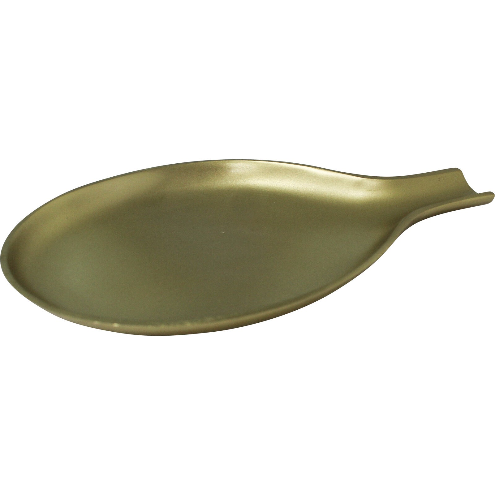 The Spoon Rest / Tray Lrg is a large sized lovely kitchen and dining serving ware crafted in a design showcasing delightful simplicity. This particular serving ware is artfully made through the use of premium quality aluminum material and then finished with alluring brass hue in a design that is functionally versatile and ornamentally appealing. It can be used a spoon rest as well as a serving tray.