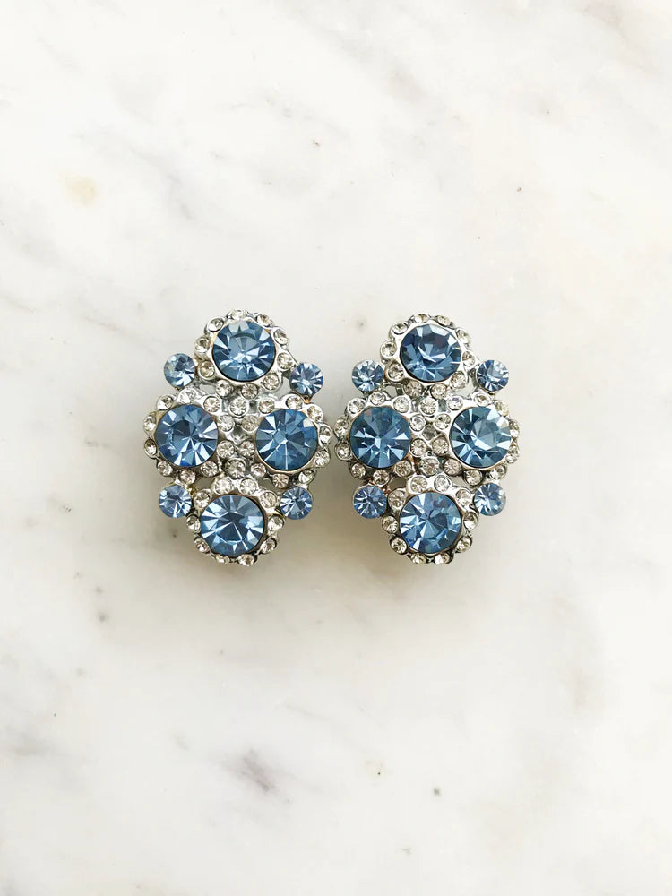 Harper Vintage Light Blue Crystal Clip on Earrings