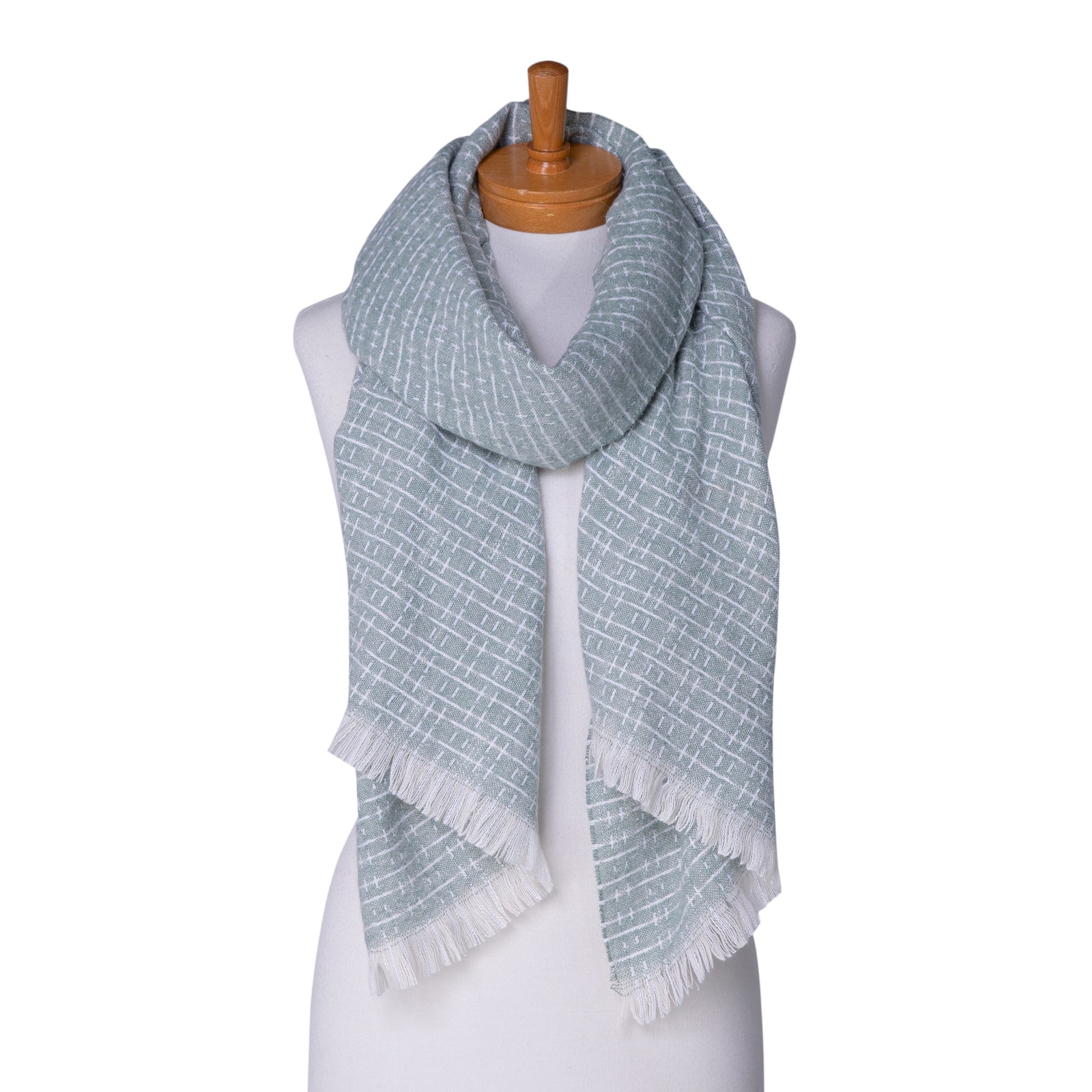 This beautiful soft sage green cotton acrylic blend scarf with tic tac design will surely brighten any outfit and keep you warm. The soft texture of the scarf feels ever so soft against the neck and it can double up as a wrap.
