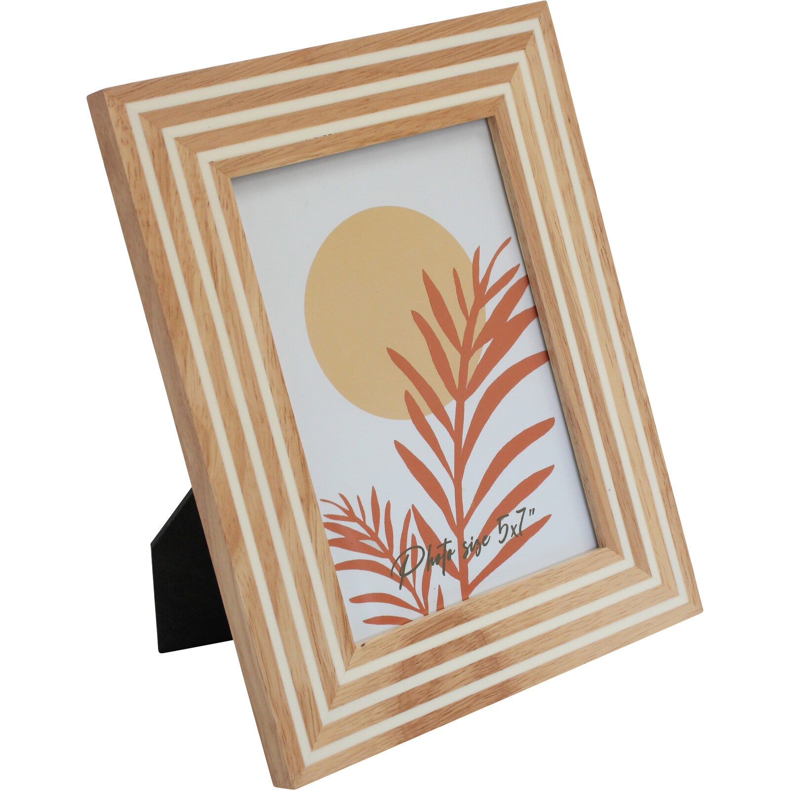 Crafted from acrylic in a soft opal white and wood in a natural light wood colour. This frame shows off its colour contrast, unique modern styling to give your picture display a well-defined look.