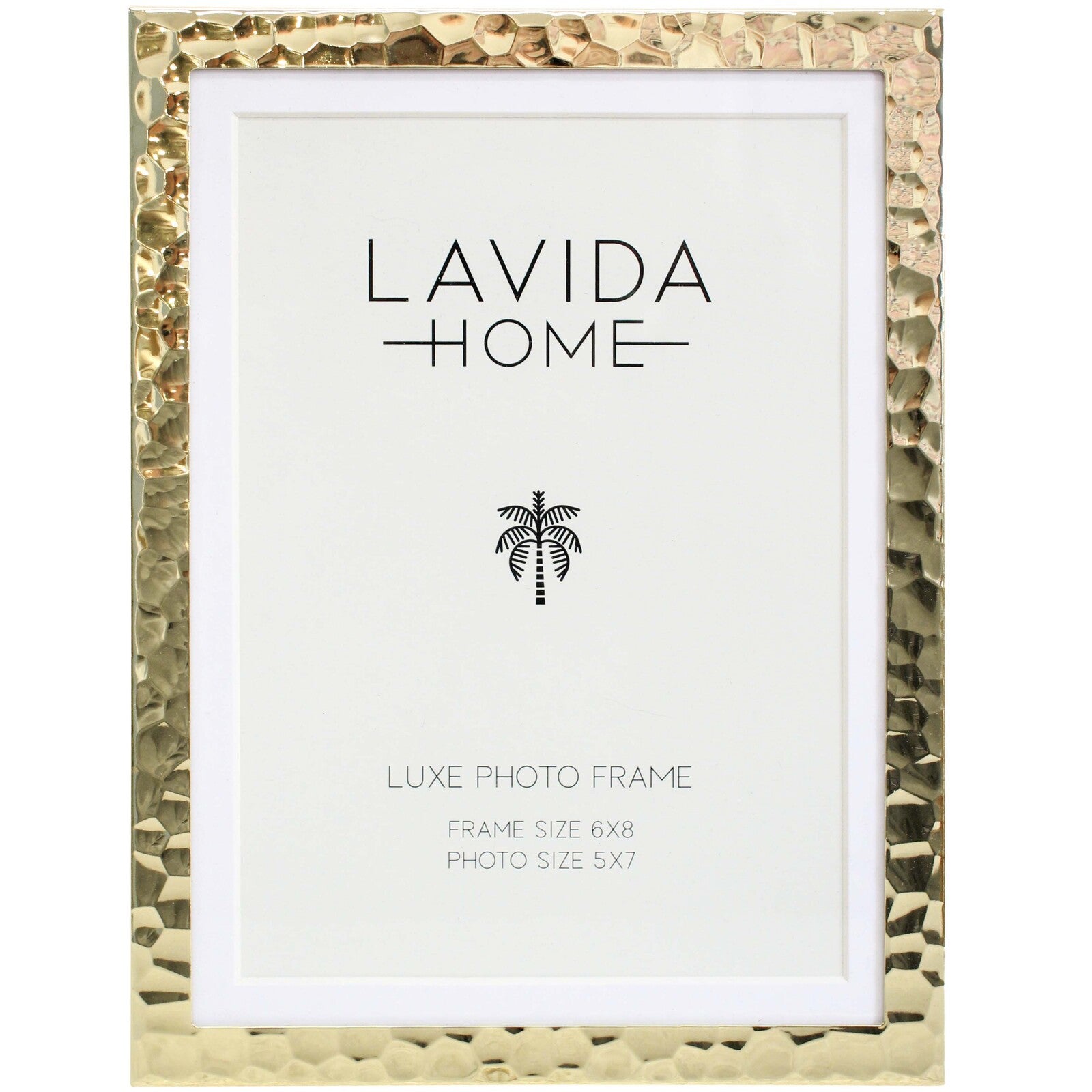 The rich, gold-tone dimpled iron border complements the simplicity of its design, crafted from durable iron and glass, offers a luxurious aesthetic.