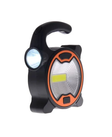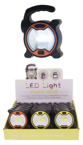 Easy to carry handle design, ultra bright COB LED technology, 3 AAA batteries included