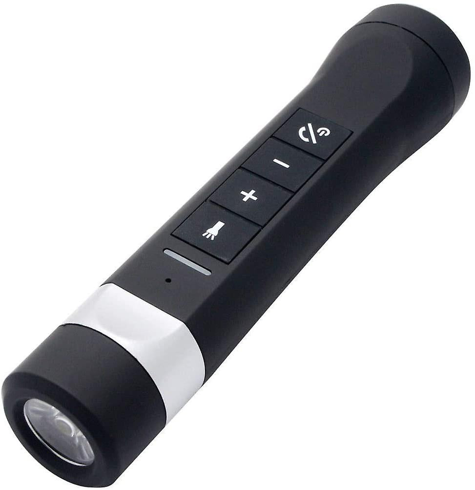 Multifunctional music flashlight with MP3 player, FM radio, hands-free and charger function, support TF card (TF card not included).Enjoy full stereo wirelessly through mobile phones or other Bluetooth devices, built with modern acoustic structure, improve the sound quality of external speakers, and the sound quality is clear.