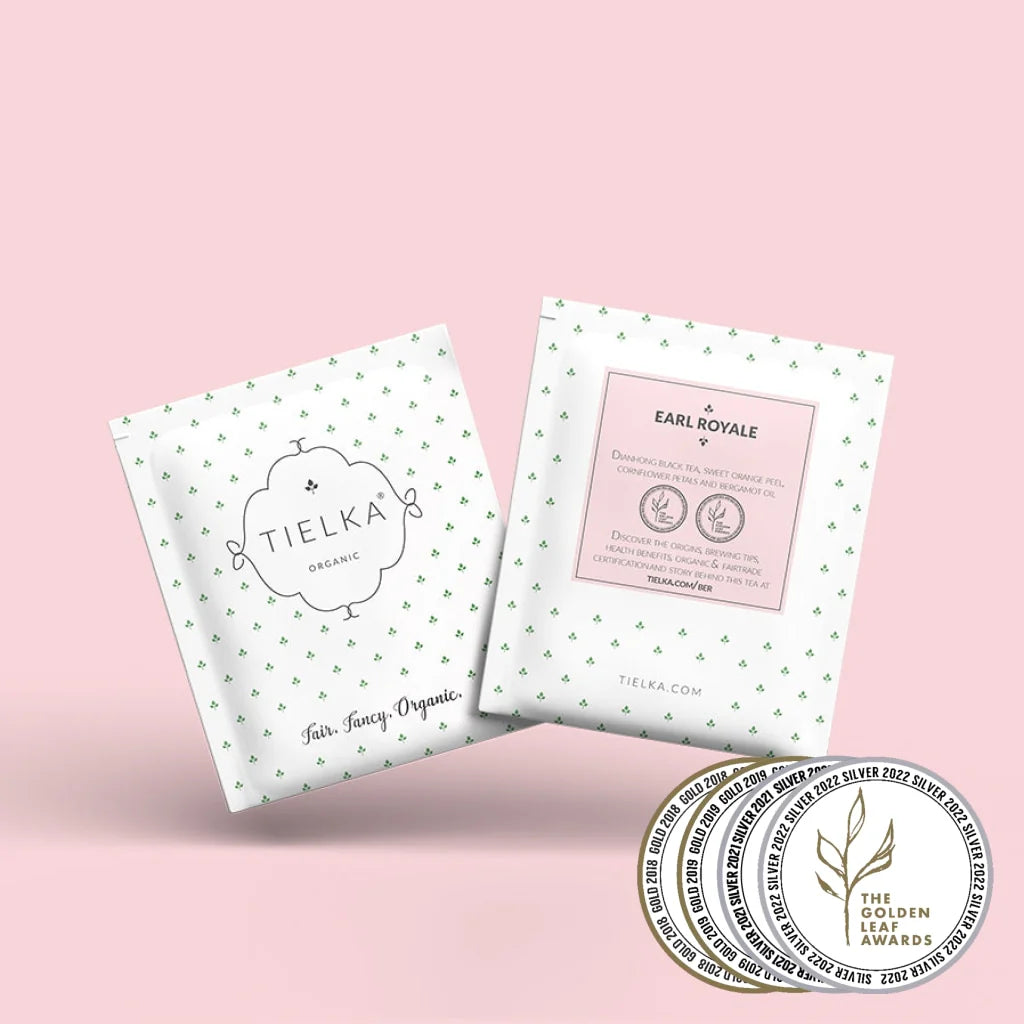 Tielka's strikingly beautiful, smooth traditional Earl Grey for an elevated palate. Certified organic. Deeply calming citrus notes anchored by Tielka's signature Black Tea.