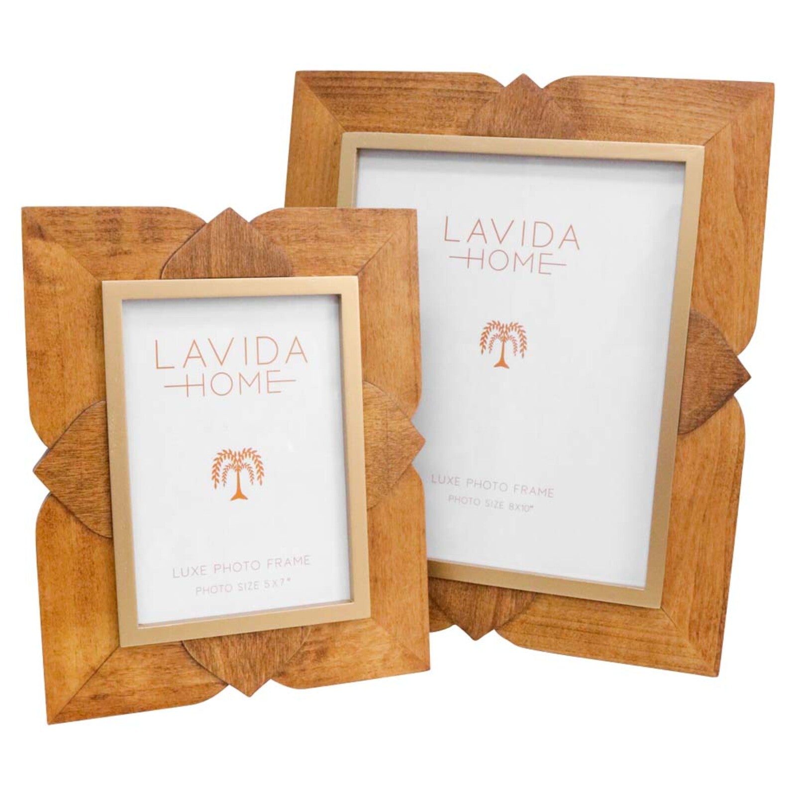 Capture your cherished moments in style with these Moroque Photo Frames. Crafted from timber, MDF, and glass, the frames are available in two sizes, making it ideal for display on a side table or shelf. Its warm, rich finish and unique geometric border add a touch of elegance, enhancing both family photos and art prints alike.