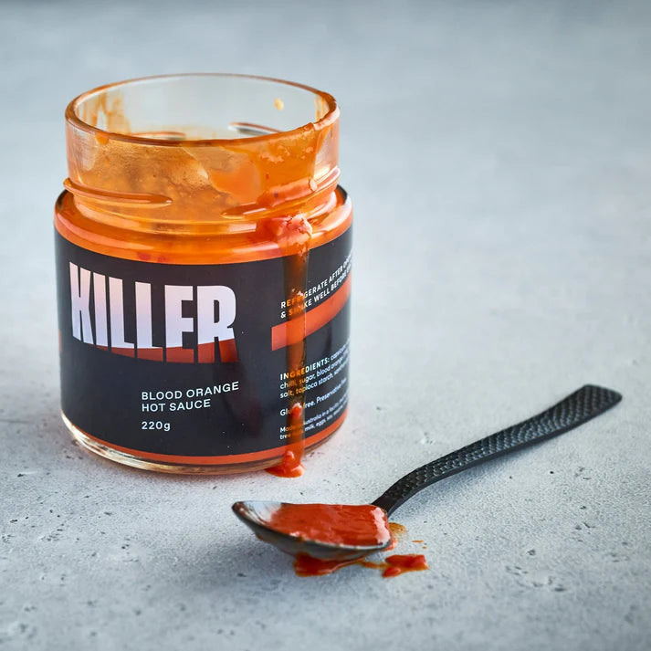 Discover the captivating Blood Orange Hot Sauce, where zesty sweetness meets fiery spice in perfect balance. Made without gluten or preservatives, this sauce delivers a delicious kick that enhances any dish. At Killer Condiments, we’re dedicated to exceptional flavor, and this sauce reflects our passion for bold, layered tastes. Enjoy the vibrant blend of capsicum, spicy chili, and the natural tang of blood oranges. Perfect for elevating grilled meats, tacos, or roasted veggies, every drop promises a memorable taste adventure. Heat level: moderate (2.5/5). Ingredients include capsicum, vinegar, chili, sugar, blood orange (11%), water, salt, tapioca starch, and xanthan gum.