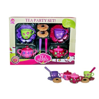 - Includes Cups & Saucers, Teapot, Sugar Bowl, Spoons, and Biscuits