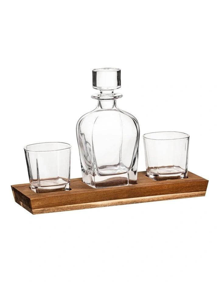 Specifications: Decanter: 11x11x21.5cm, Glass: 8.5x8.5x8.5cm, Acacia coaster: 33x13x3.5cm Capacity/Volume: Decanter: 700ml, Glass: 230ml Craftsmanship: Crystal/Acacia