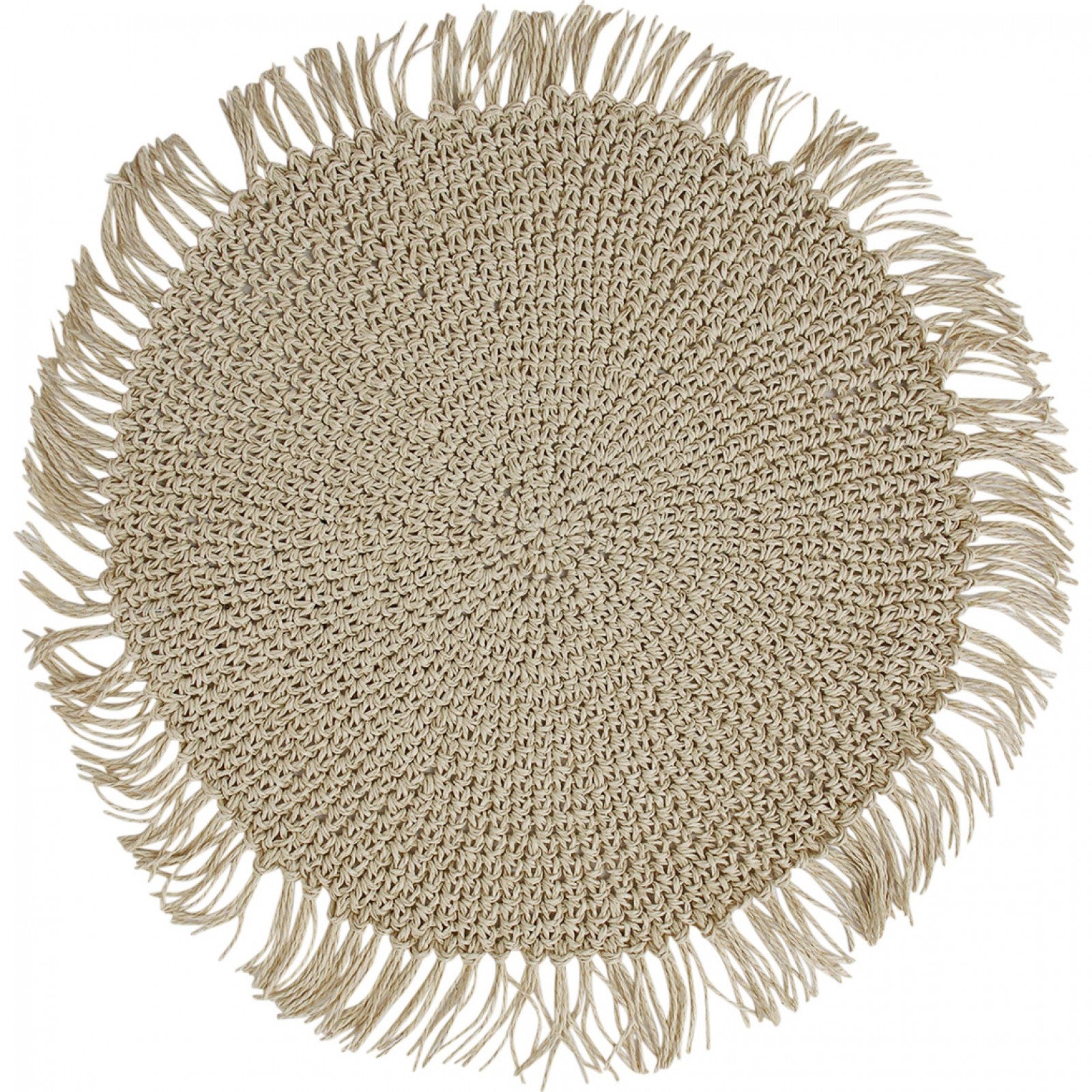Made through the innovative use and weaving of durable paper material. The edge of the circular frame are decorative fringes which adds an appealing look to the aesthetic appearance of this placemat.